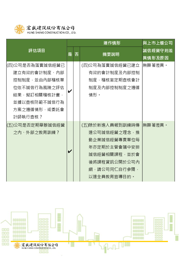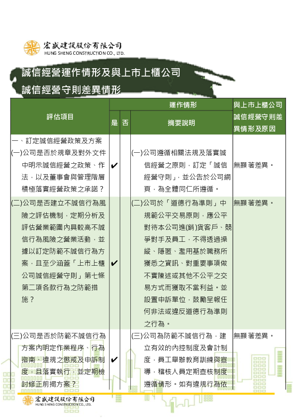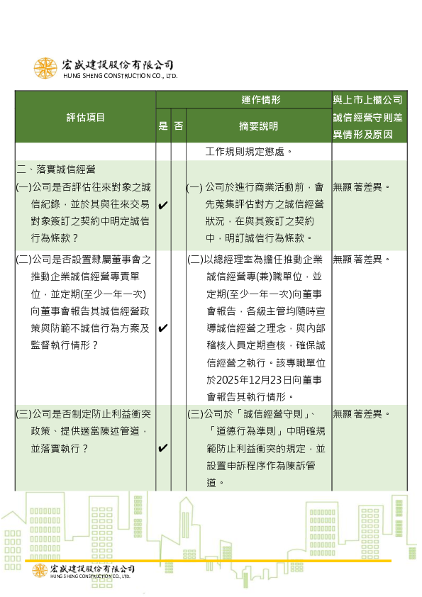 誠信經營運作情形及與上市上櫃公司誠信經營守則差異情形